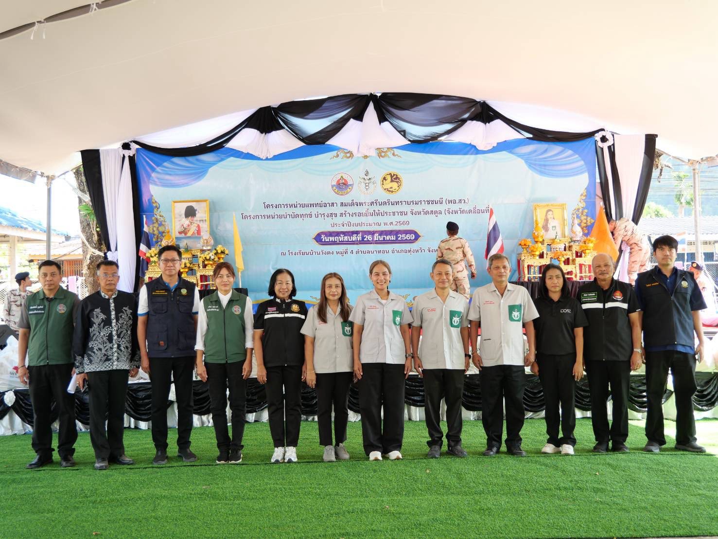 วันนี้ (26 มีนาคม 2569) นายนพพร หนูเพชร ปลัดจังหวัดสตูล เป็นประธานในพิธีเปิดโครงการหน่วยแพทย์อาสาสมเด็จพระศรีนครินทราบรมราชชนนี (พอ.สว.) และโครงการหน่วยบำบัดทุกข์ บำรุงสุข สร้างรอยยิ้มให้ประชาชน จังหวัดสตูล (จังหวัดเคลื่อนที่) ครั้งที่ 2 ประจำปี 2569 โดยมีส่วนราชการในจังหวัดสตูล นักเรียน และประชาชนในพื้นที่ เข้าร่วมโครงการในครั้งนี้ ณ โรงเรียนบ้านวังตง หมู่ที่ 4 ตำบลนาทอน อำเภอทุ่งหว้า จังหวัดสตูล