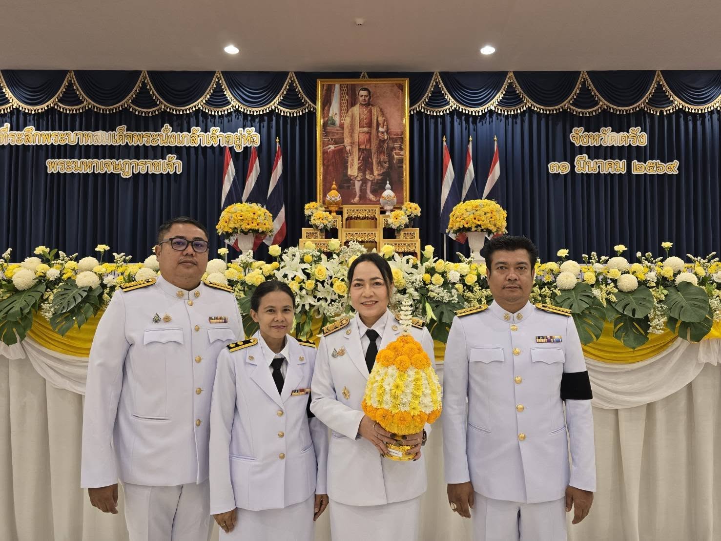 วันนี้ (31 มีนาคม 2569) นายทรงกลด สว่างวงศ์ ผู้ว่าราชการจังหวัดตรัง เป็นประธานในพิธี “วันที่ระลึกพระบาทสมเด็จพระนั่งเกล้าเจ้าอยู่หัว พระมหาเจษฎาราชเจ้า” โดยนายพิมาน จันทมณีโชติ ผู้อำนวยการโครงการชลประทานตรัง สำนักงานชลประทานที่ 16 ได้มอบหมายให้นายสงกรานต์ หนูฤทธิ์ หัวหน้าฝ่ายส่งน้ำและบำรุงรักษาที่ 1 พร้อมด้วยนายชัยวุฒิ ชูทอง หัวหน้าฝ่ายส่งน้ำและบำรุงรักษาที่ 2 นางสาวนัฏชา รุ่ยใหม่ หัวหน้าฝ่ายบริหารทั่วไป และนางทิพย์ภาพร เพ็ชรเกิด เจ้าพนักงานสถิติ เข้าร่วมพิธีในครั้งนี้ ณ หอประชุมจังหวัดตรัง อำเภอเมืองตรัง จังหวัดตรัง เพื่อเป็นการน้อมรำลึกถึงพระเกียรติคุณ และแสดงความกตัญญูกตเวทีต่อองค์พระบาทสมเด็จพระนั่งเกล้าเจ้าอยู่หัว พระมหาเจษฎาราชเจ้า