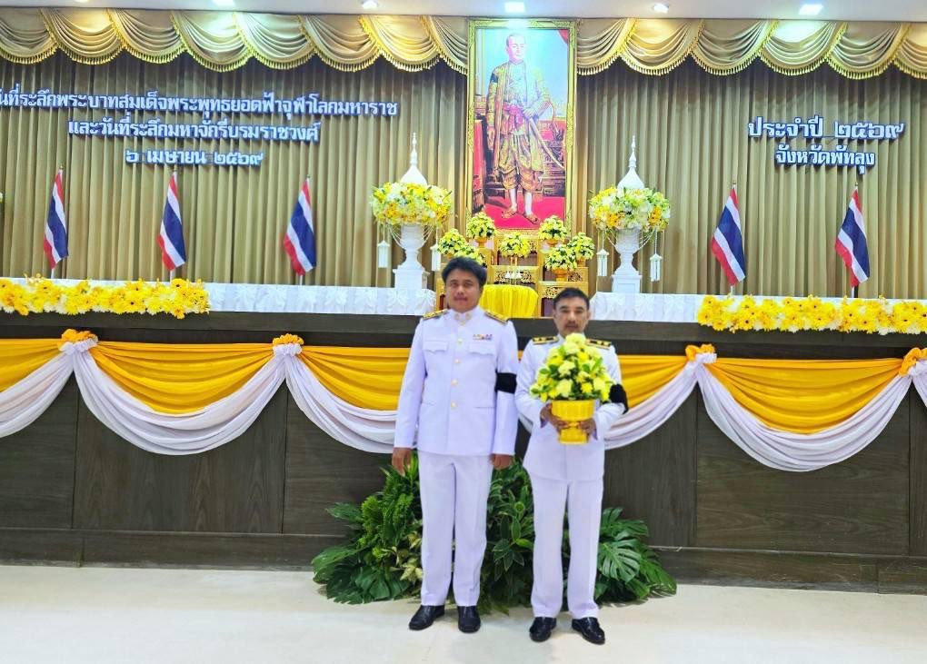 วันนี้ (6 เมษายน 2569) นายสุจินต์ วาจากิจ ผู้ว่าราชการจังหวัดพัทลุง เป็นประธานในรัฐพิธี “วันพระบาทสมเด็จพระพุทธยอดฟ้าจุฬาโลกมหาราชและวันที่ระลึกมหาจักรีบรมราชวงศ์” โดยนายสมบูรณ์ทัศน์ สุริยะย์ ผู้อำนวยการโครงการส่งน้ำและบำรุงรักษาท่าเชียด สำนักงานชลประทานที่ 16 มอบหมายให้นายอัตพงค์ หนูผุด หัวหน้าฝ่ายจัดสรรน้ำและปรับปรุงระบบชลประทาน พร้อมด้วยนายอัฐพล จงรัตน์ นายช่างชลประทาน และหน่วยงานราชการที่เกี่ยวข้อง เข้าร่วมพิธีวางพานพุ่มดอกไม้ถวายราชสักการะเบื้องหน้าพระบรมฉายาลักษณ์พระบาทสมเด็จพระพุทธยอดฟ้าจุฬาโลกมหาราช ณ หอประชุมจังหวัดพัทลุง อำเภอเมืองพัทลุง จังหวัดพัทลุง เพื่อเป็นการน้อมรำลึกในพระมหากรุณาธิคุณ