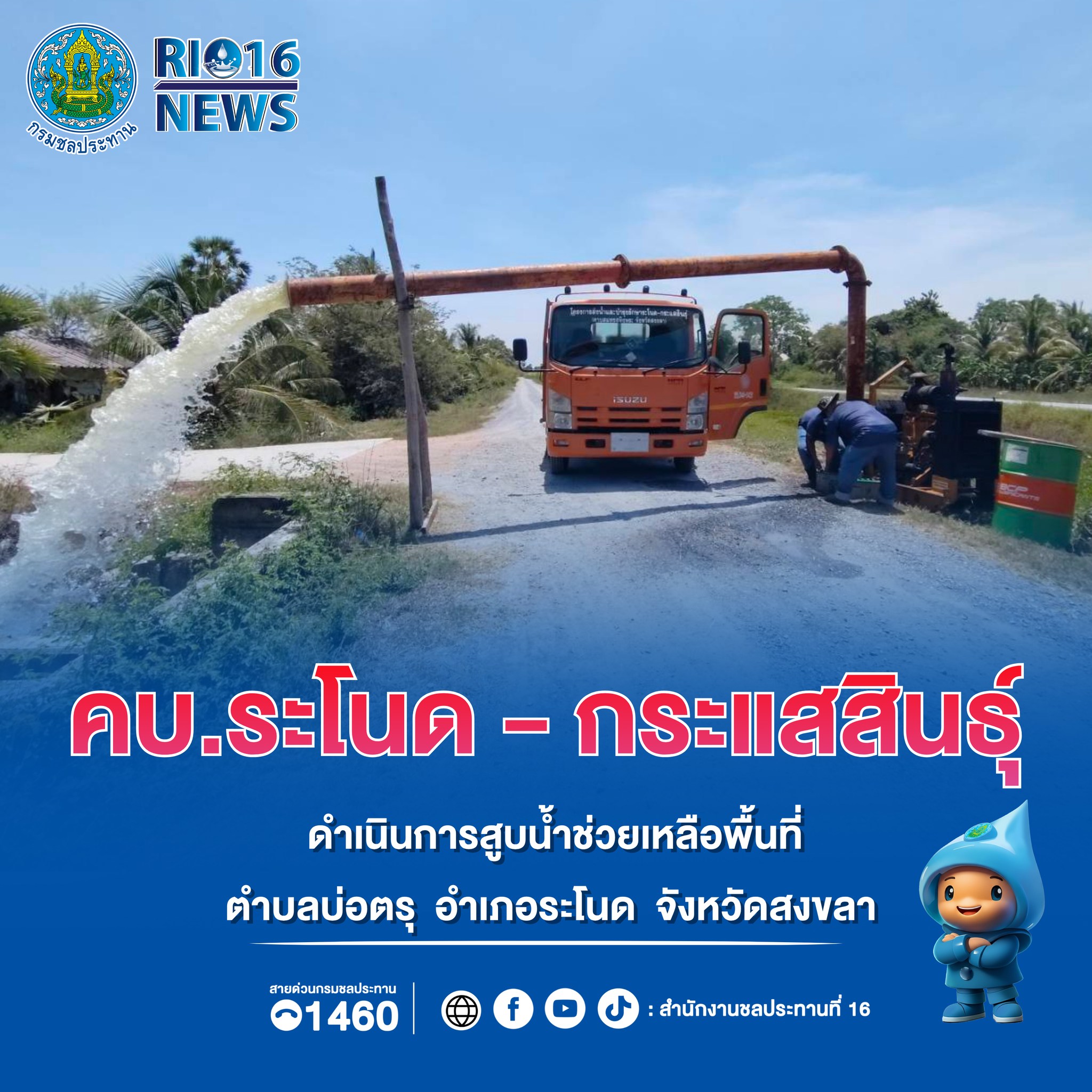 คบ.ระโนด-กระแสสินธุ์ ดำเนินการสูบน้ำช่วยเหลือพื้นที่ ตำบลบ่อตรุ อำเภอระโนด จังหวัดสงขลา